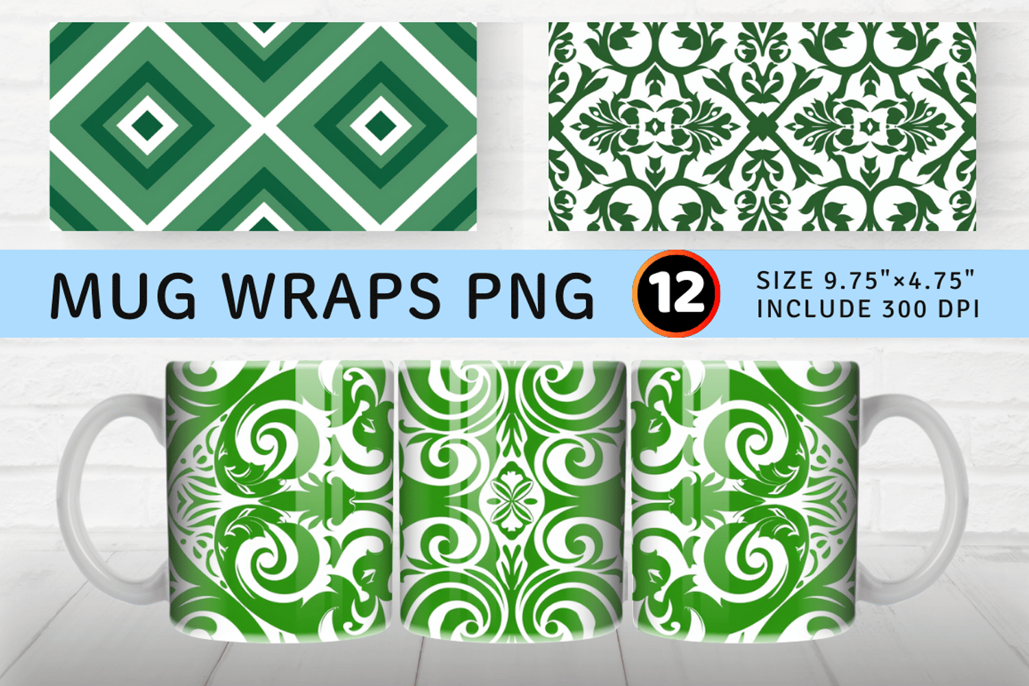 Green and White Mug Wrap Sublimation Designs