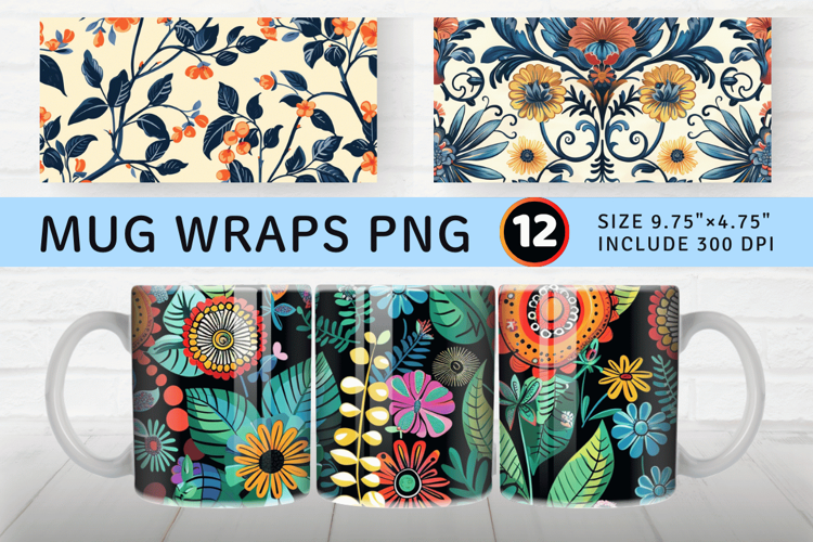 Mug Wrap Sublimation Design PNG. Digital Download Template. Design comes in Only straight wall.