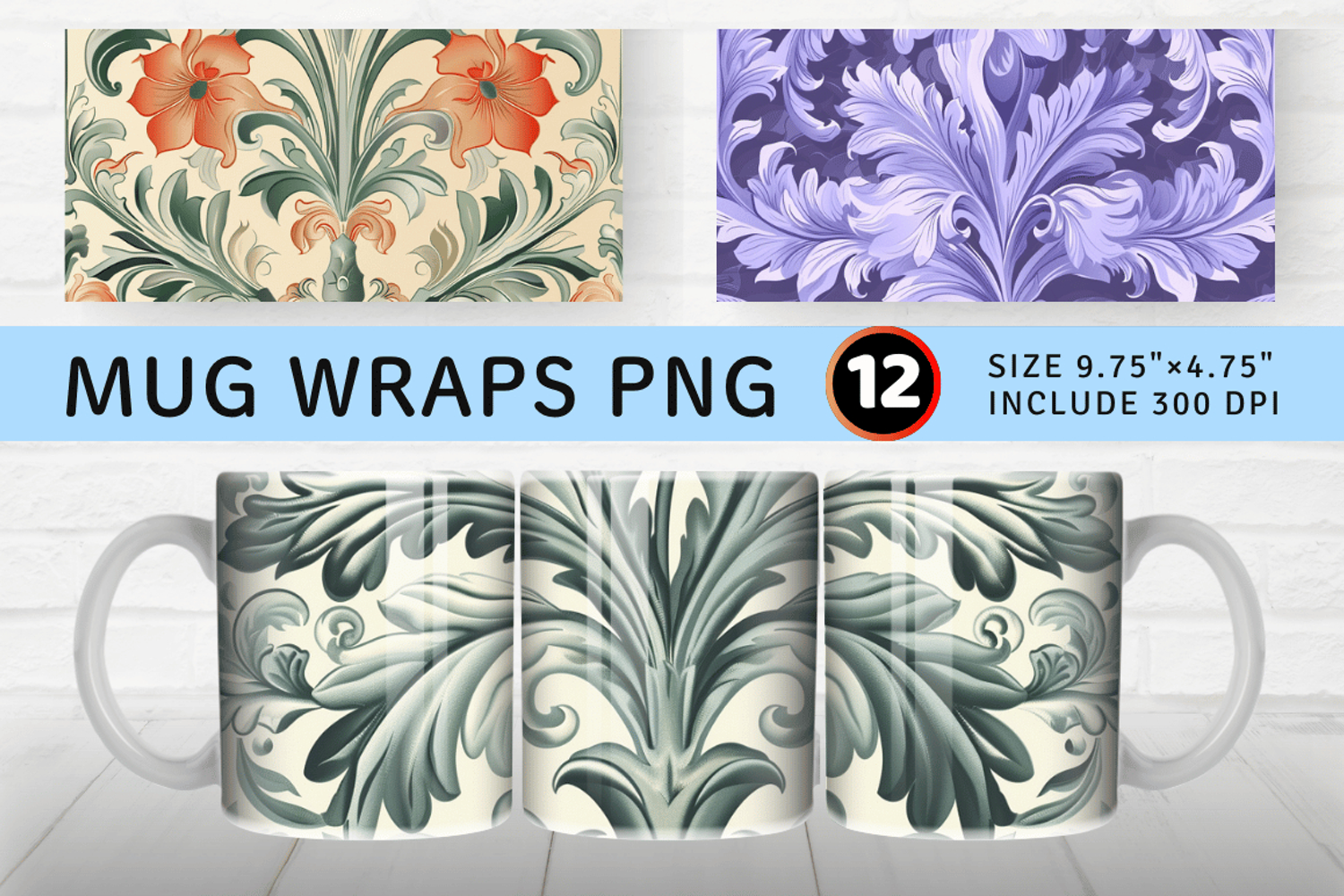 Sages Ornamental Mug Wrap Sublimation Designs