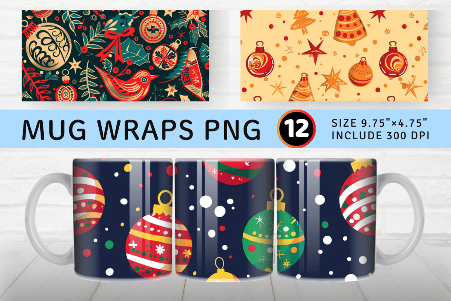 Festive Joyful Merry Christmas Mug Wrap Sublimation Designs