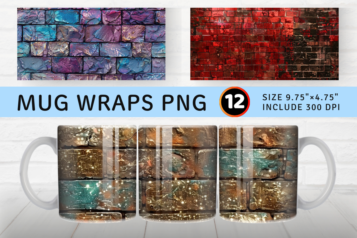 Glitzy Brick Wall Mug Wrap Sublimation Designs