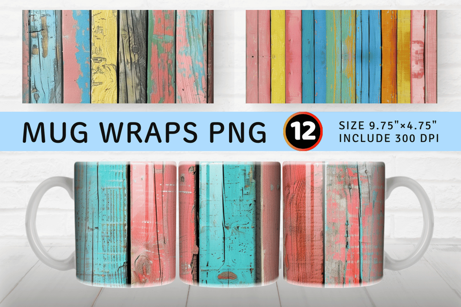 Beach Colorful Wood Mug Wrap Sublimation Designs