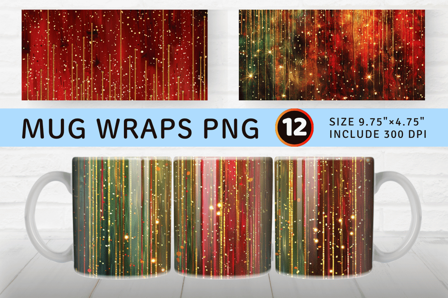 Christmas Dripping Glitter Mug Wrap Sublimation Designs