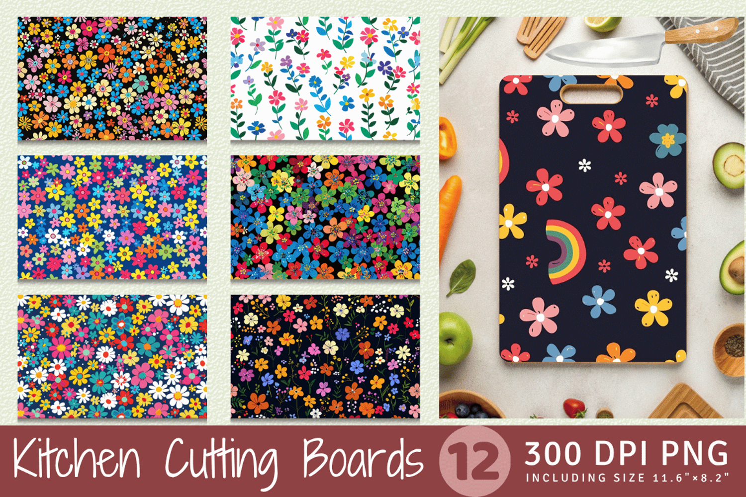 Tiny Rainbow Flowers Cutting Boards sublimation Designs
