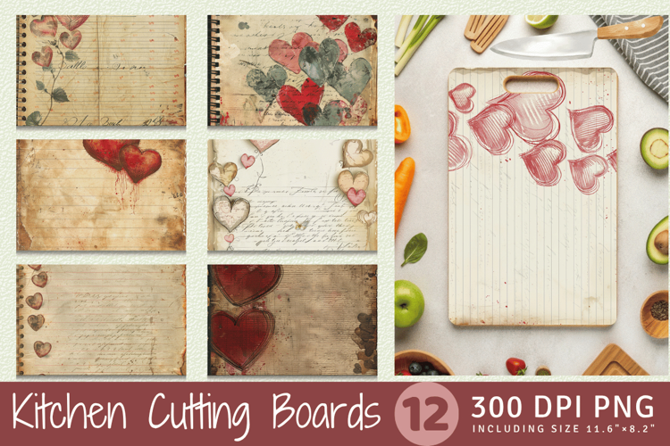Vintage Hearts Junk Journal Cutting Boards sublimation Designs