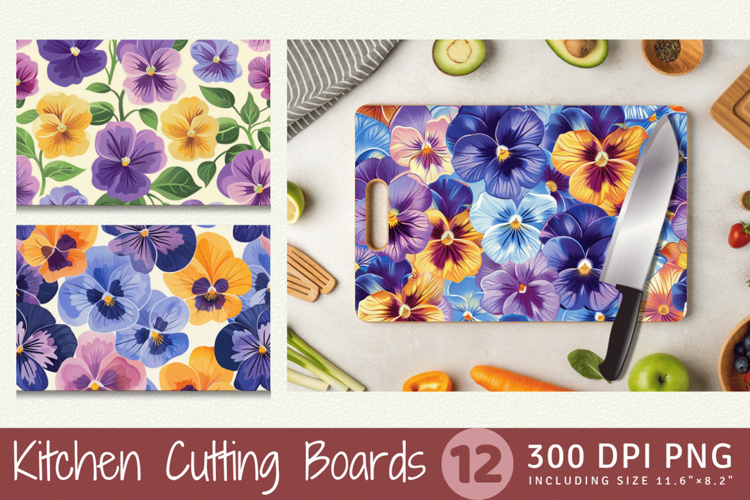 Whimsical Pansy Flowers Cutting Boards sublimation Designs