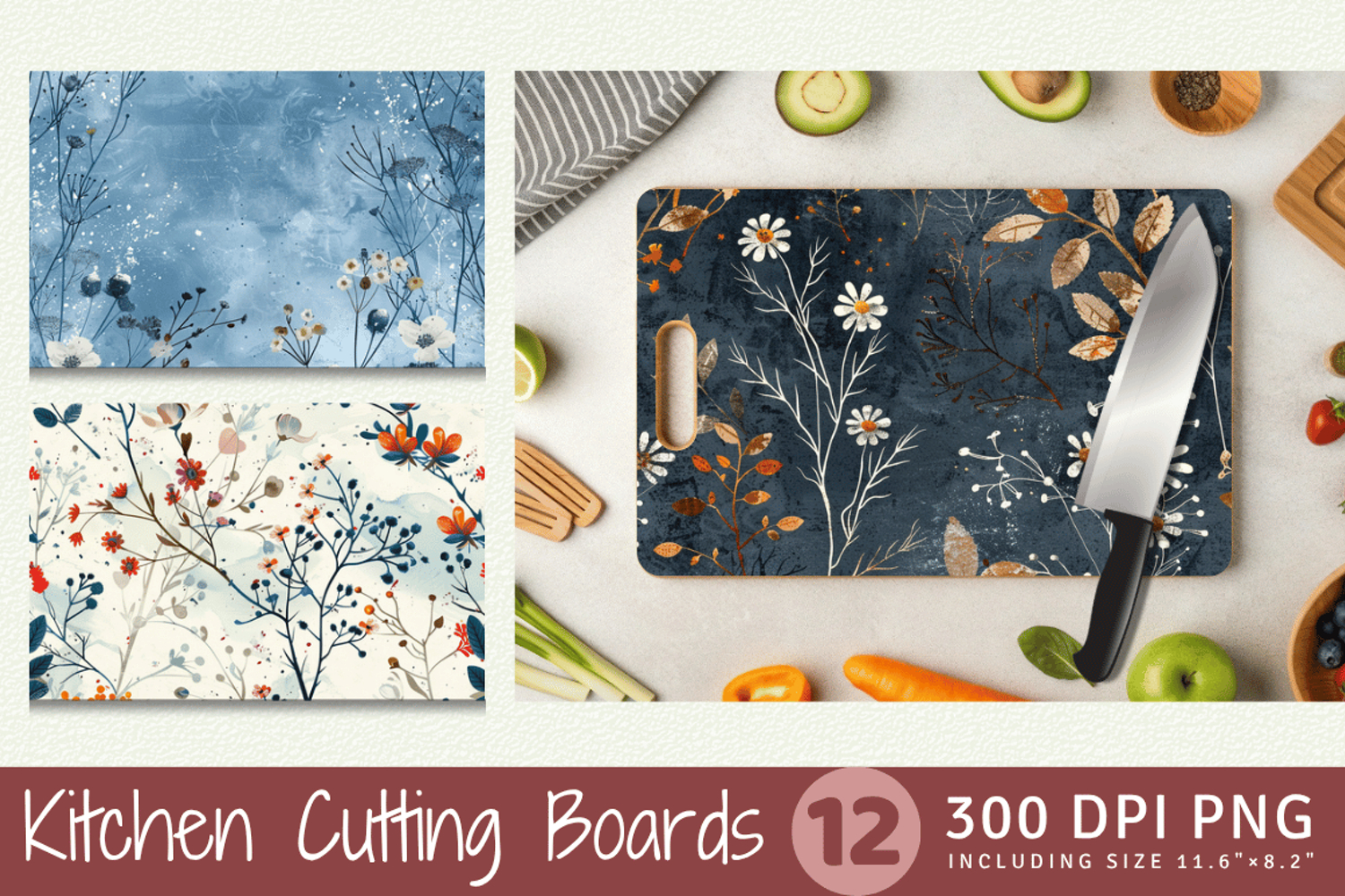 Winter Pressed Flowers Cutting Boards sublimation Designs