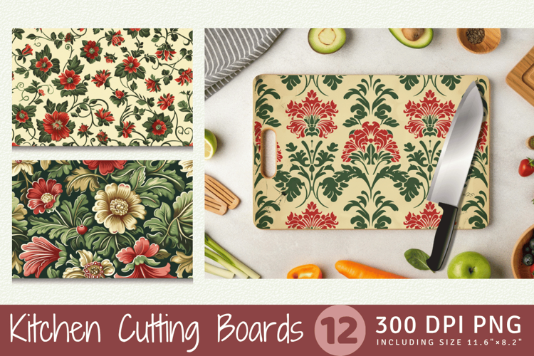 Red & Green Vintage Flowers Cutting Boards sublimation Designs