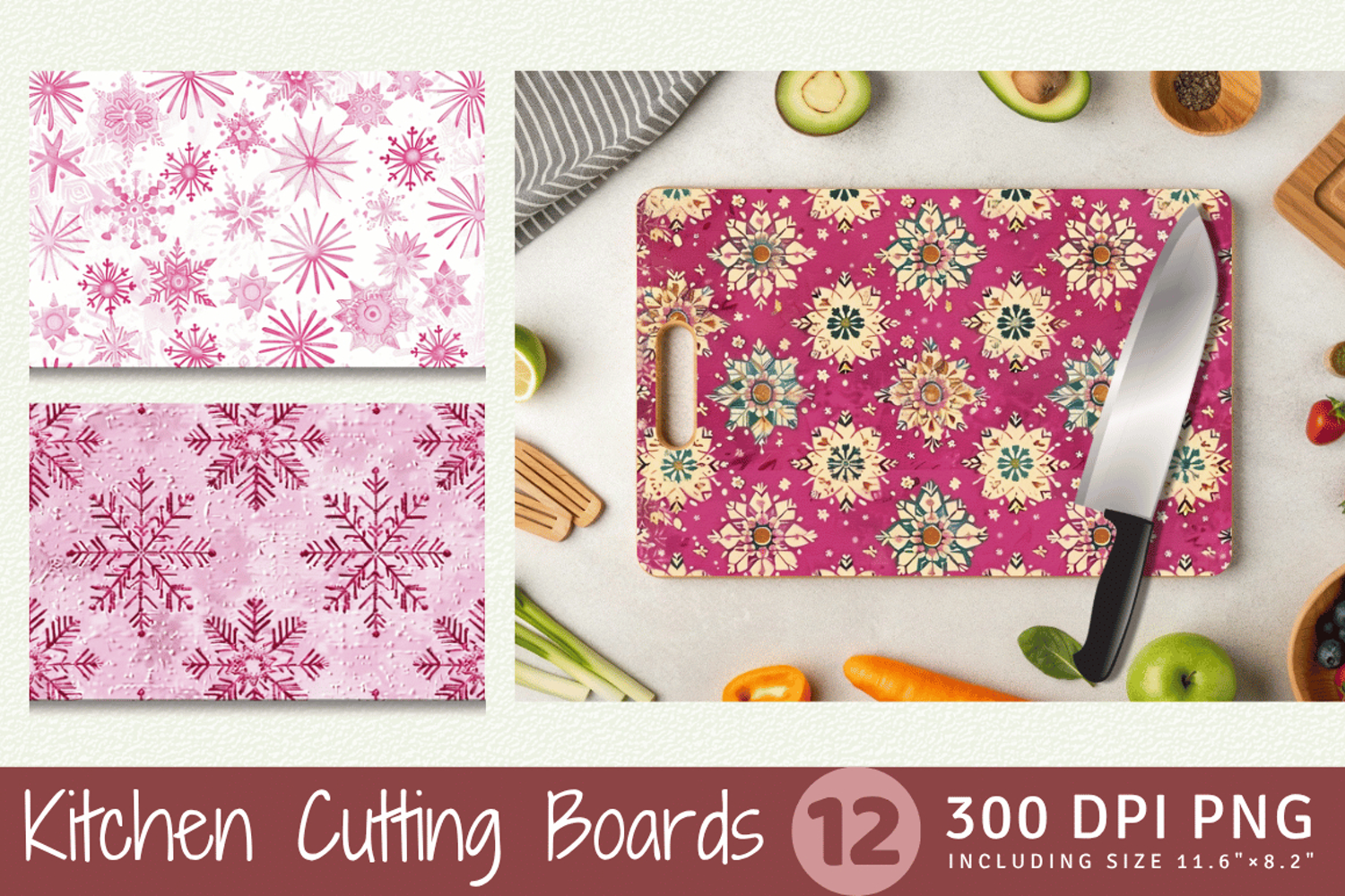 Pink Snowflakes Embroidery Cutting Boards sublimation Designs