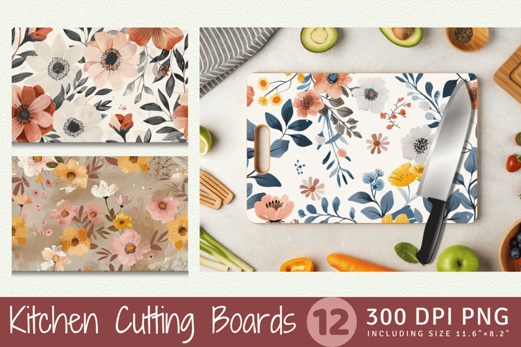 Natural Chic Flowers Cutting Boards sublimation Designs