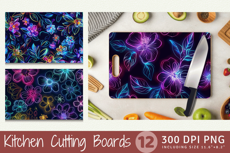 Cute Neon Blooming Flowers Cutting Boards sublimation Designs