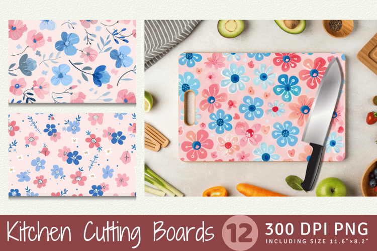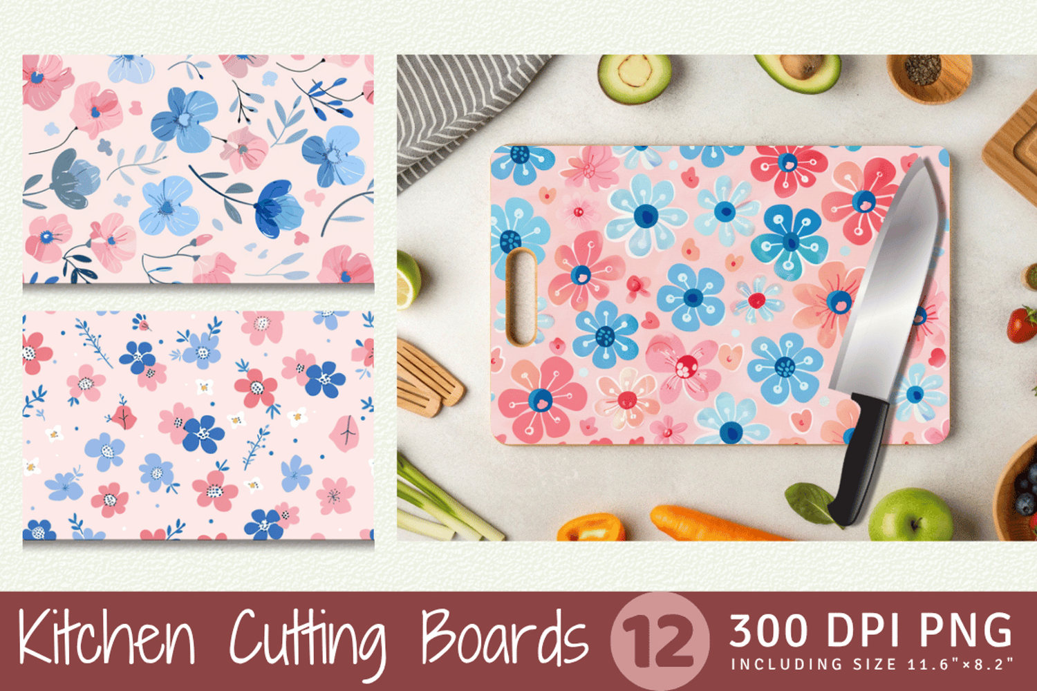 Pink Blue Cute Flowers Cutting Boards sublimation Designs