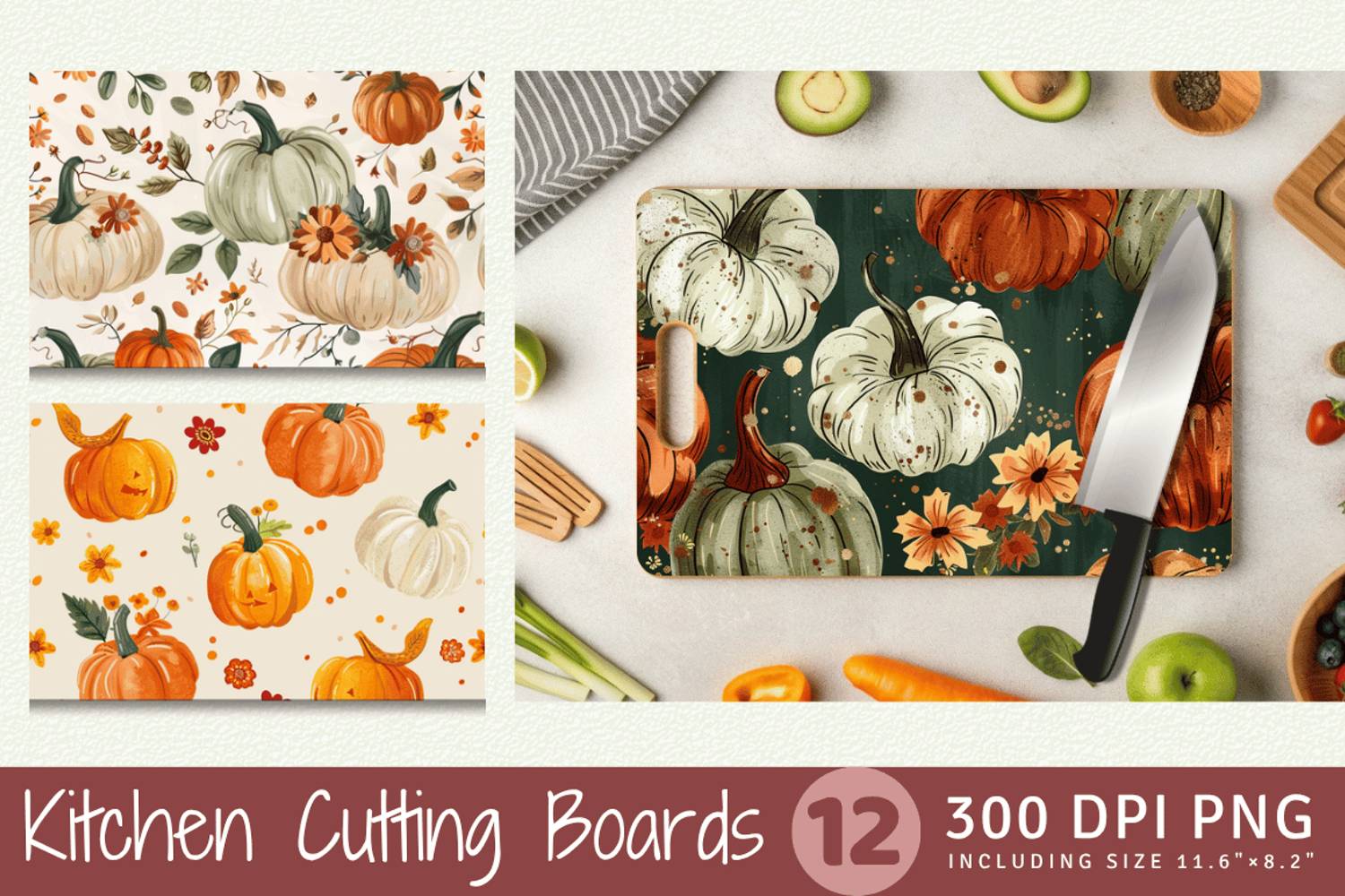 Fall Floral Pumpkins Cutting Boards sublimation Designs