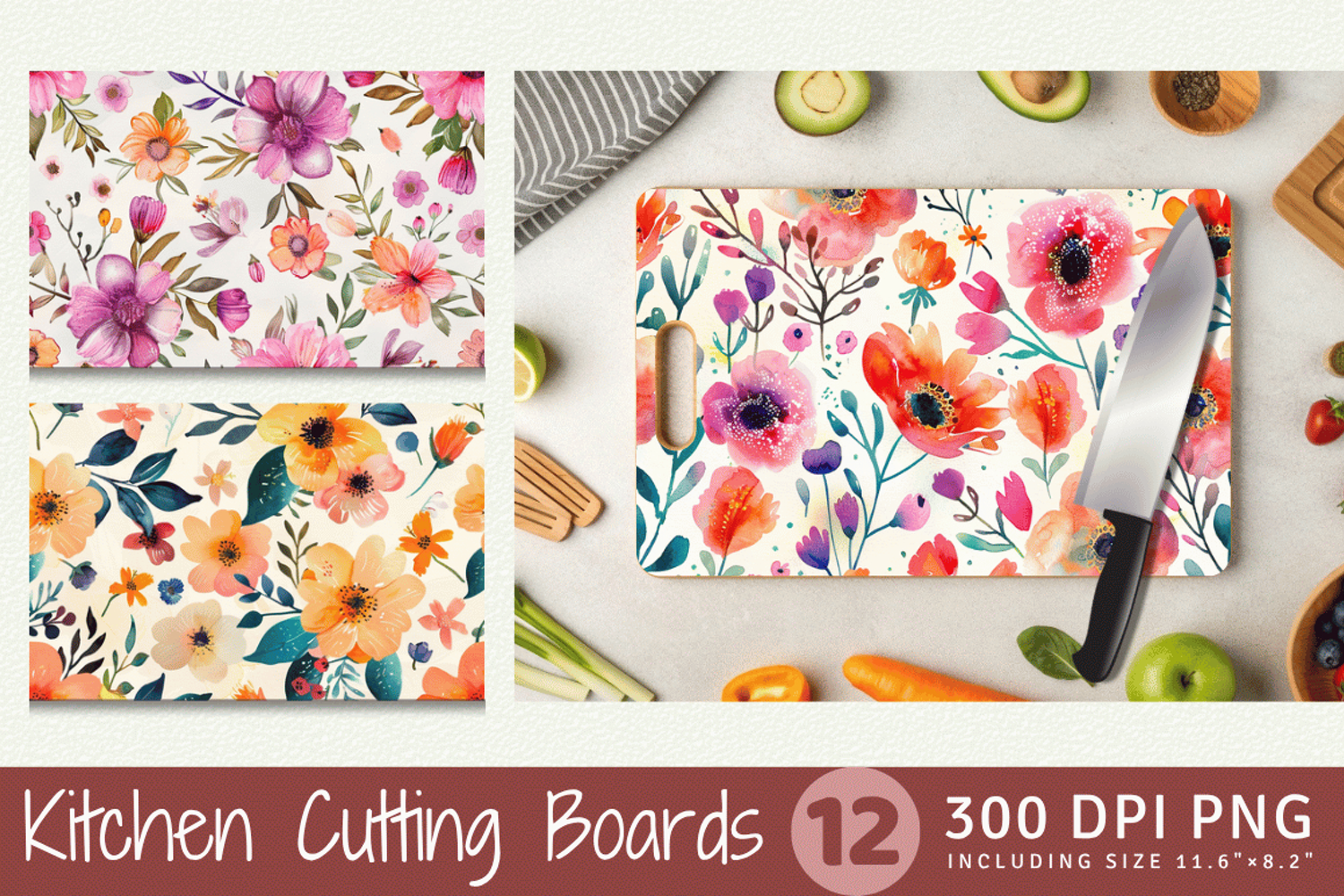 Kitchen Cutting Board Design Wooden Cutting Board Design Bamboo Kitchen Board Design Modern Kitchen Cutting Board Rustic Cutting Board Design Engraved Cutting Board Design Aesthetic Kitchen Board Custom Cutting Board Design Chopping Board Artwork Boho Watercolor Flowers Cutting Boards