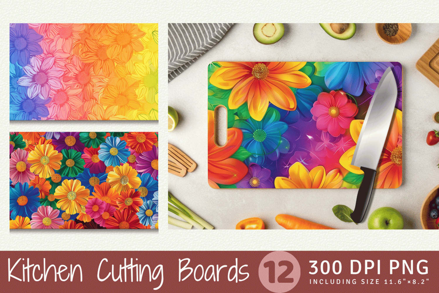 Rainbow Blooming Flowers Cutting Boards sublimation Designs