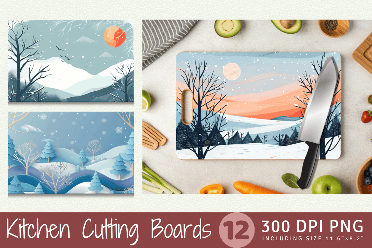 Whimsical Winter Landscape Cutting Boards sublimation Designs
