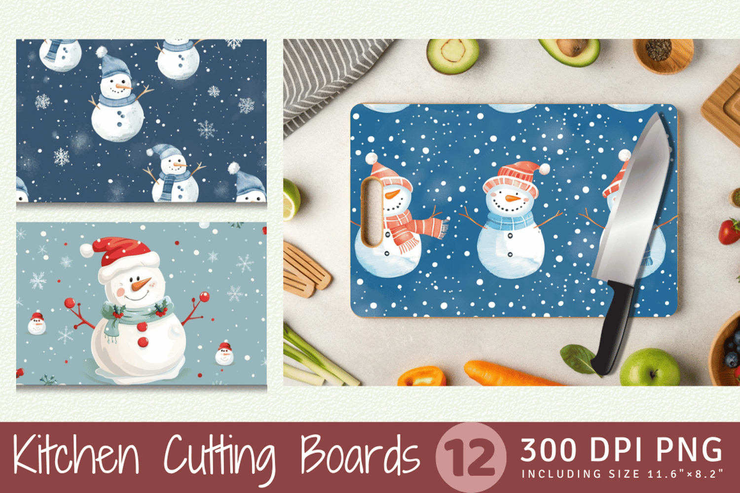 Cute Winter Snowman Cutting Boards sublimation Designs