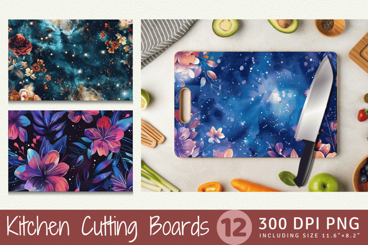 Cosmic Floral Galaxy Cutting Boards sublimation Designs