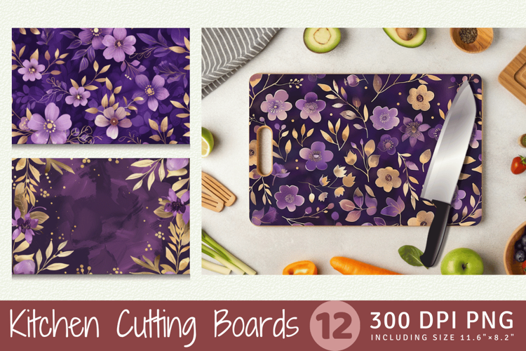 Purple & Gold Floral Cutting Boards sublimation Designs