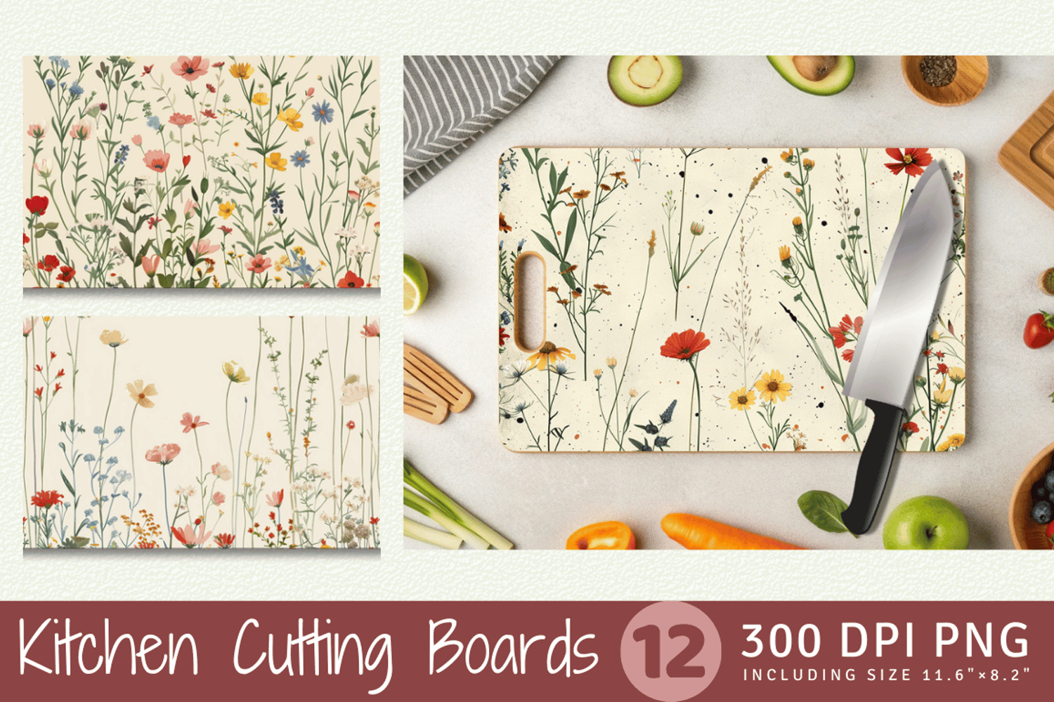 Cottagecore Wildflowers Cutting Boards sublimation Designs