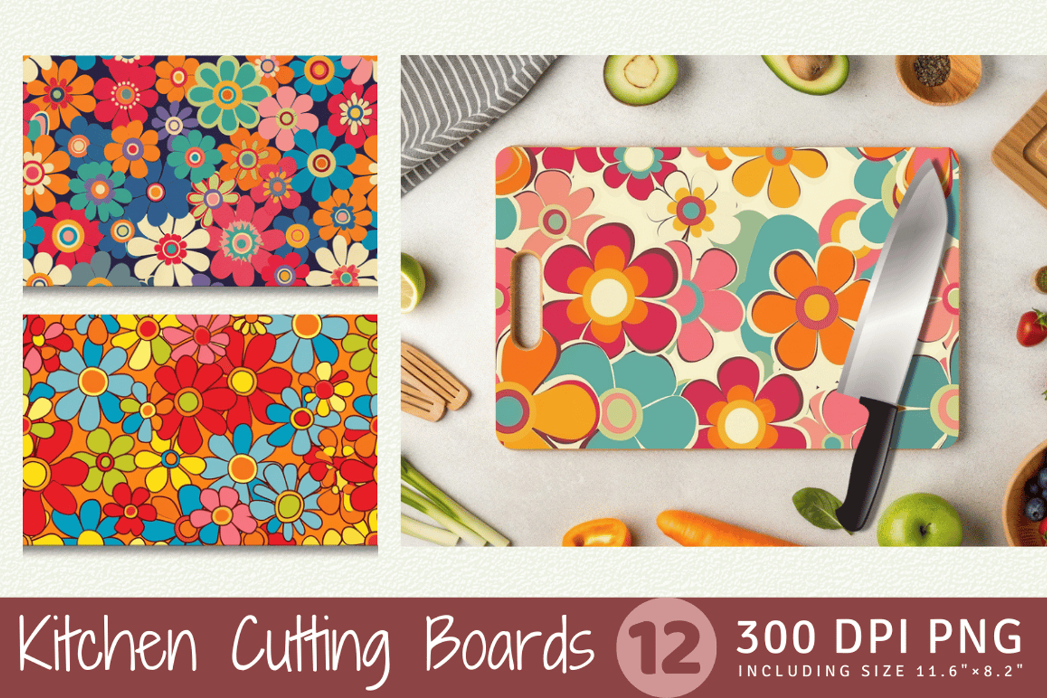 Retro Groovy Flowers Cutting Boards sublimation Designs