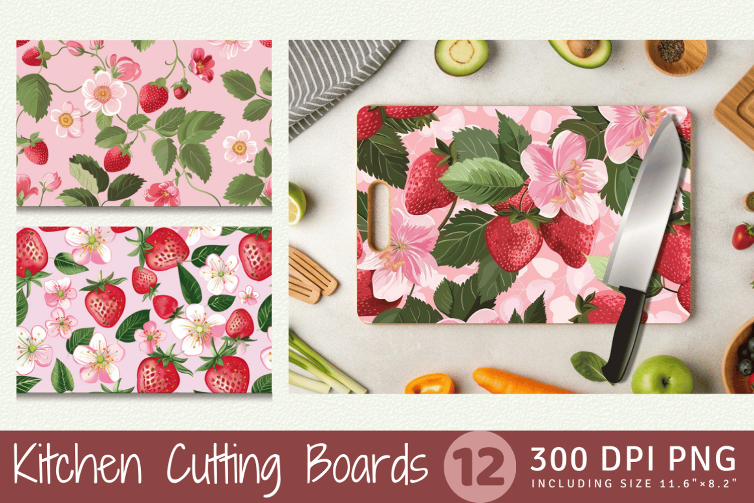 Pink Strawberry Flowers Cutting Boards sublimation Designs