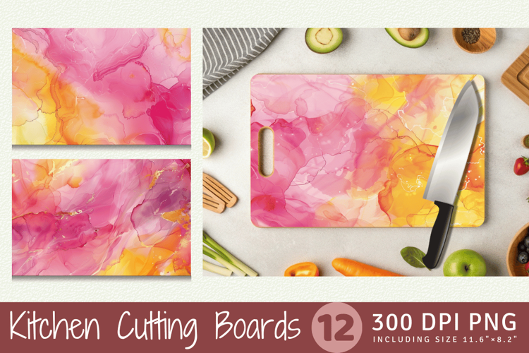 Pink & Yellow Alcohol Ink Cutting Boards sublimation Designs