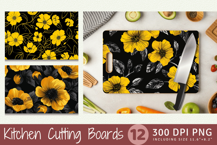 Black & Yellow Flowers Cutting Boards sublimation Designs