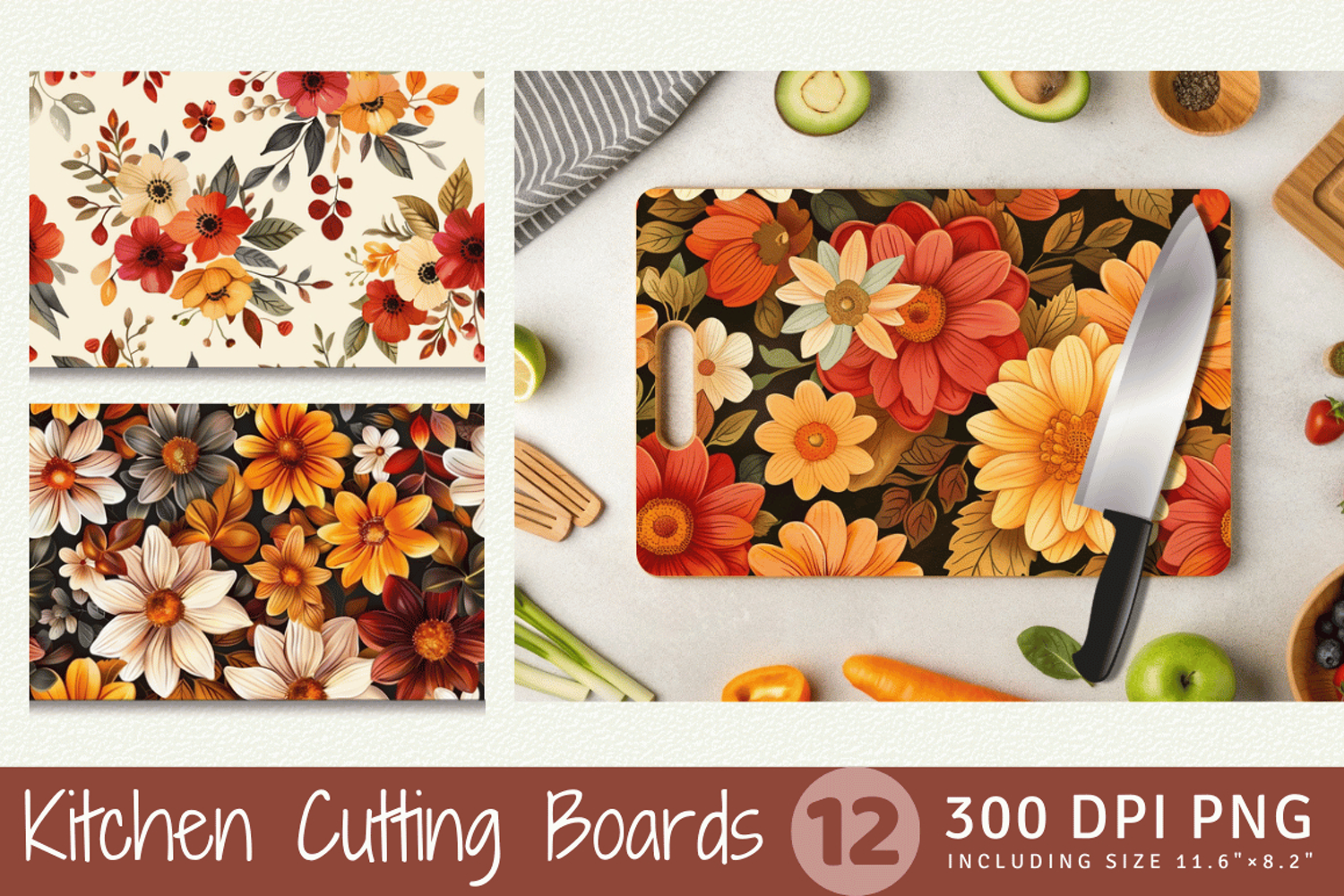 Autumn Bouquet Flowers Cutting Boards sublimation Designs