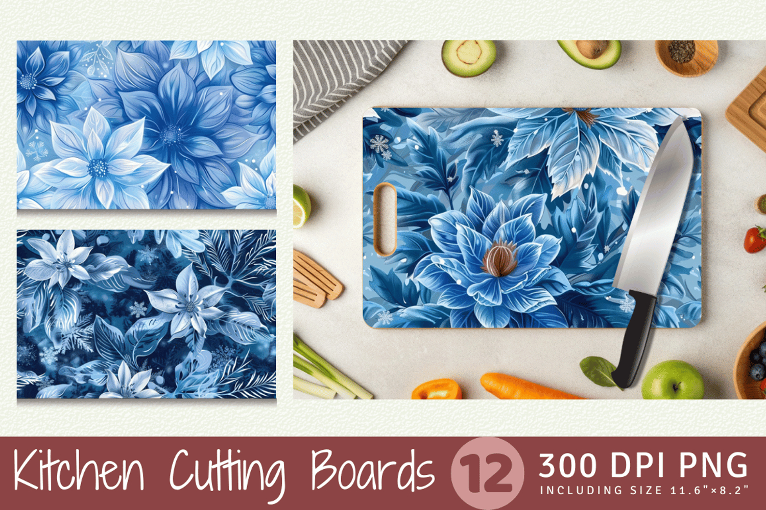 Winter Frozen Flowers Cutting Boards sublimation Designs