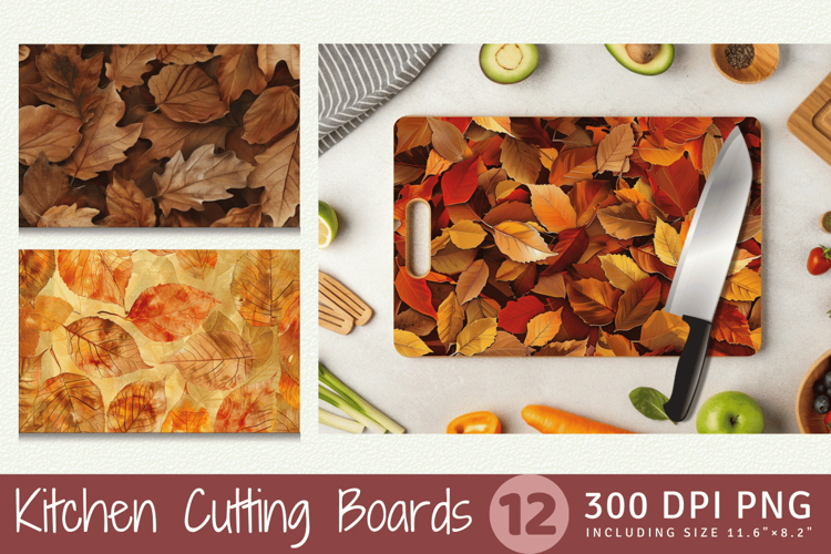 Dried Fall Leaves Cutting Boards sublimation Designs