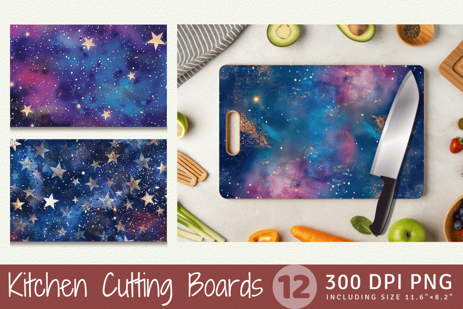 Glitter Stars Galaxy Cutting Boards sublimation Designs