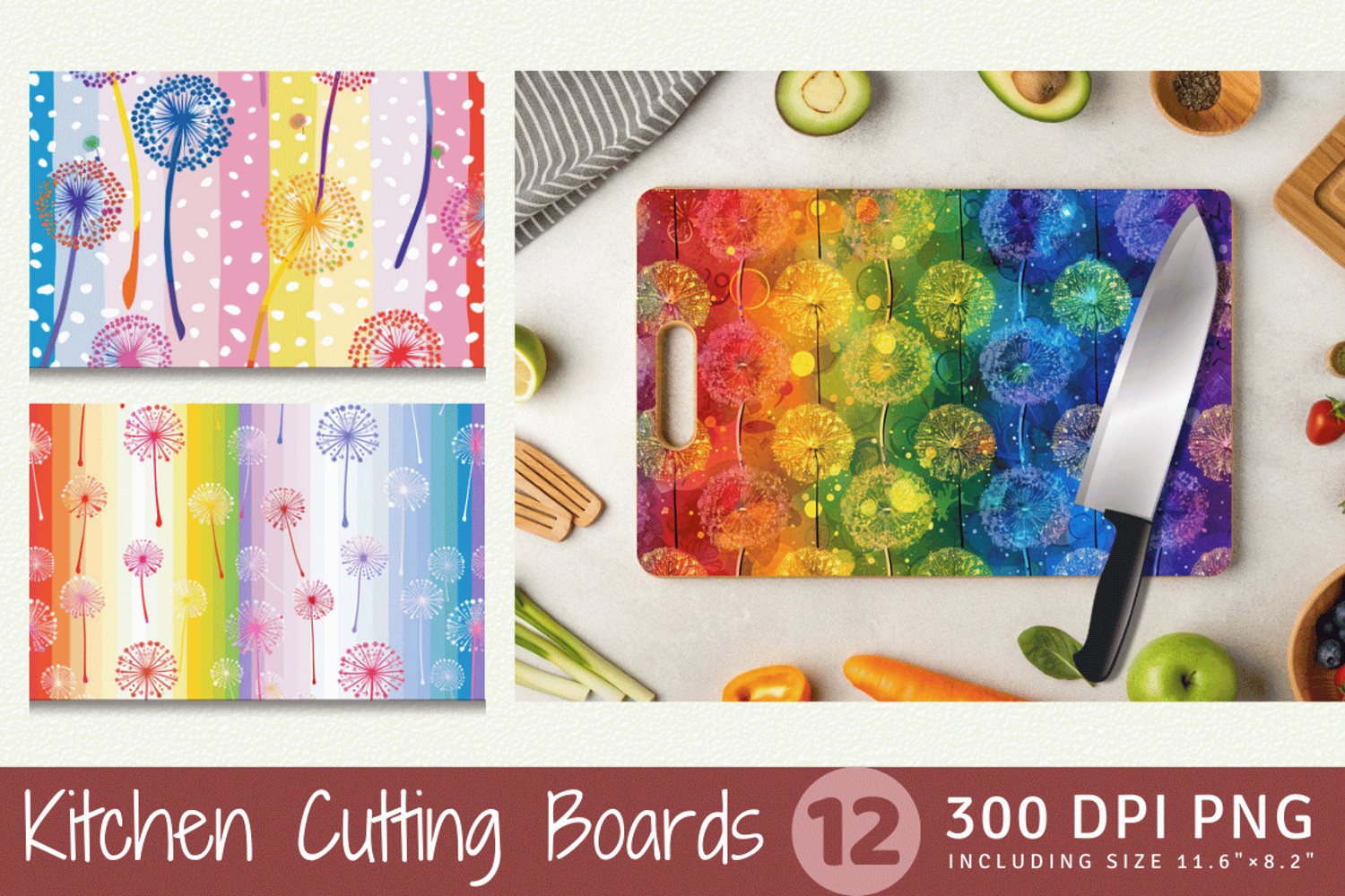 Rainbow Dandelions Cutting Boards sublimation Designs
