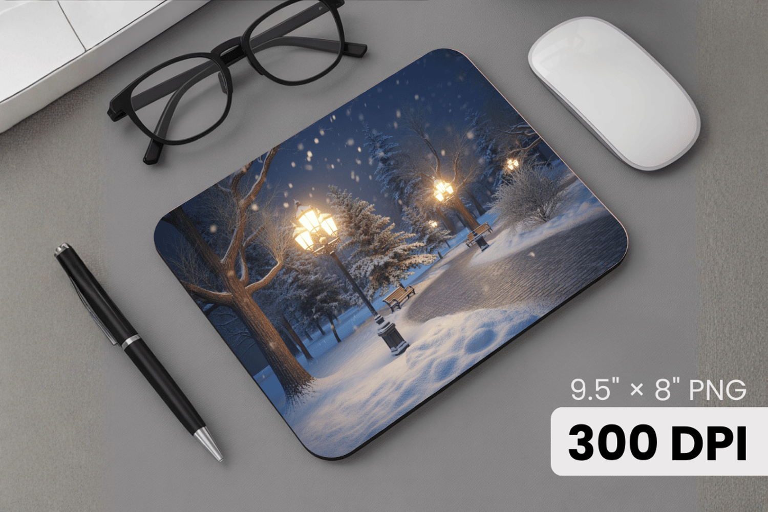 Winter Wonderland Snowflake PNG, Icy Tree Mouse Pad Design example image 1