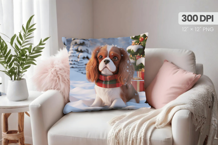 Winter Dog Christmas PNG, Winter Wonderland Pillow Design example image 1