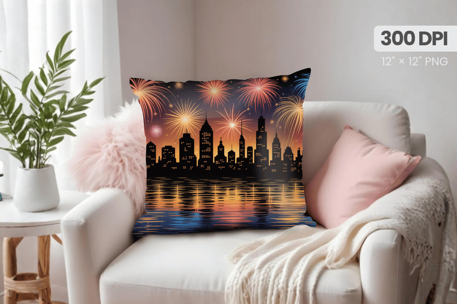 Happy New Year PNG Pillow, Festive New Year's Eve 2026 PNG Sublimation Design