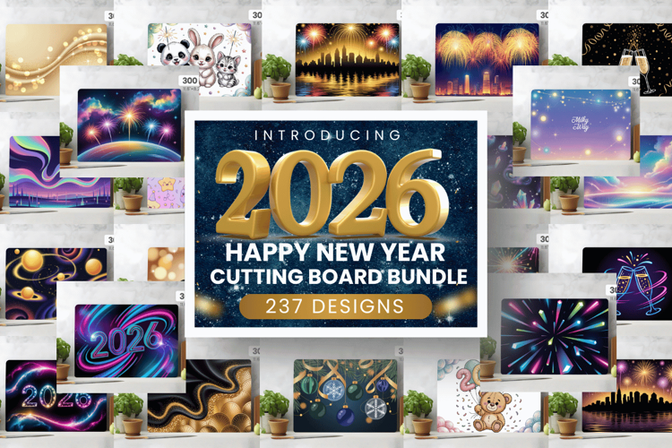 Happy New Year Cutting Board PNG Bundle, Festive New Year's Eve 2026 Cutting Board PNG Sublimation Design Bundle