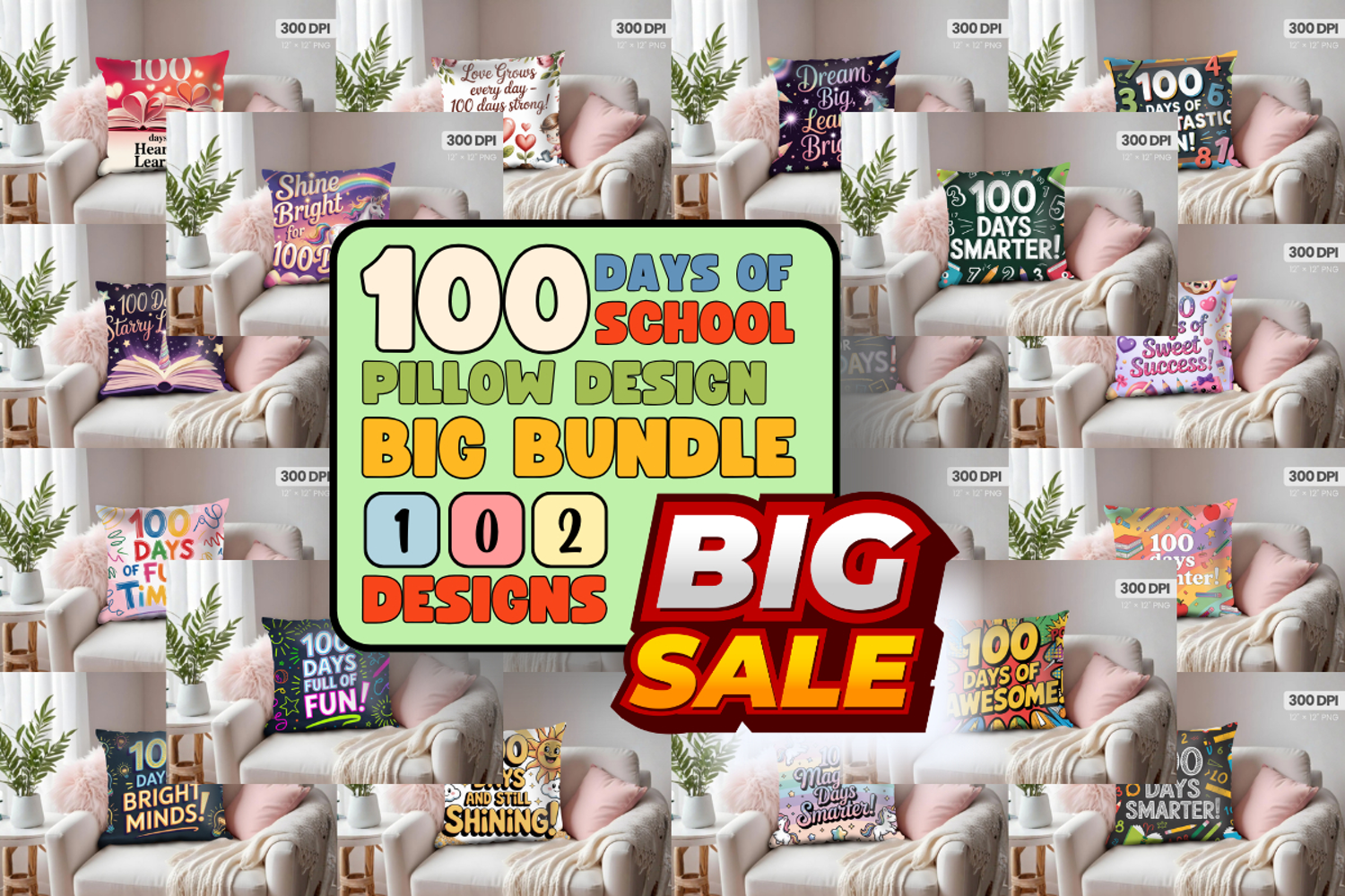 100 days of school Pillow Design Bundle, Teacher PNG Sublimation Design Bundle