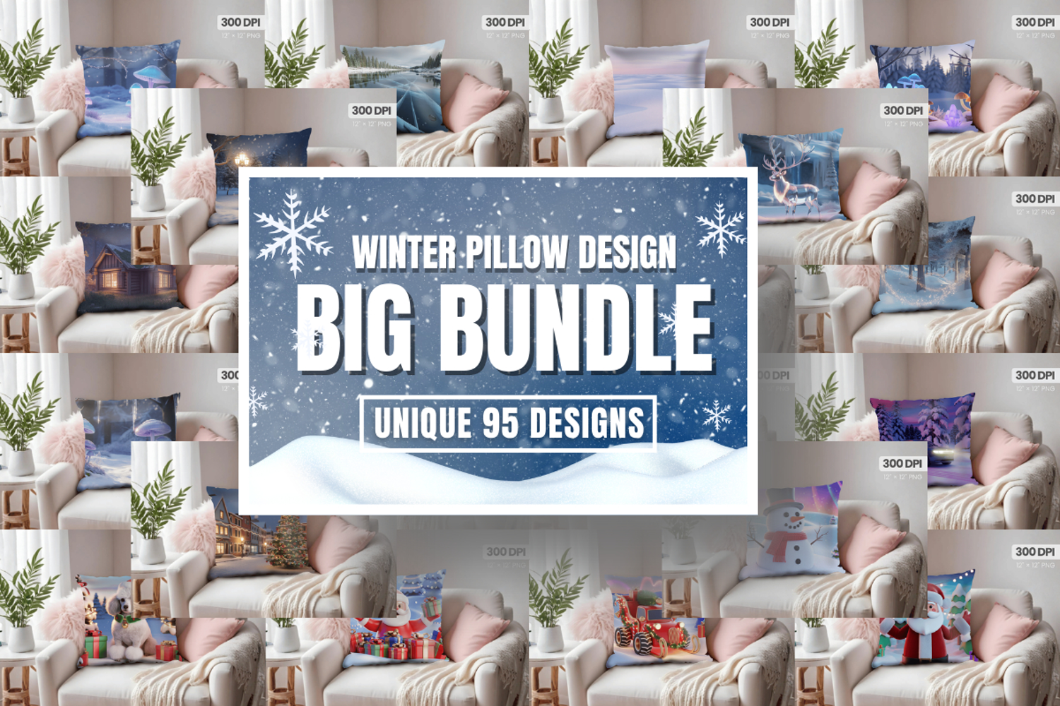 Winter Christmas Wonderland PNG Pillow Bundle, Winter Pillow Sublimation Design Bundle