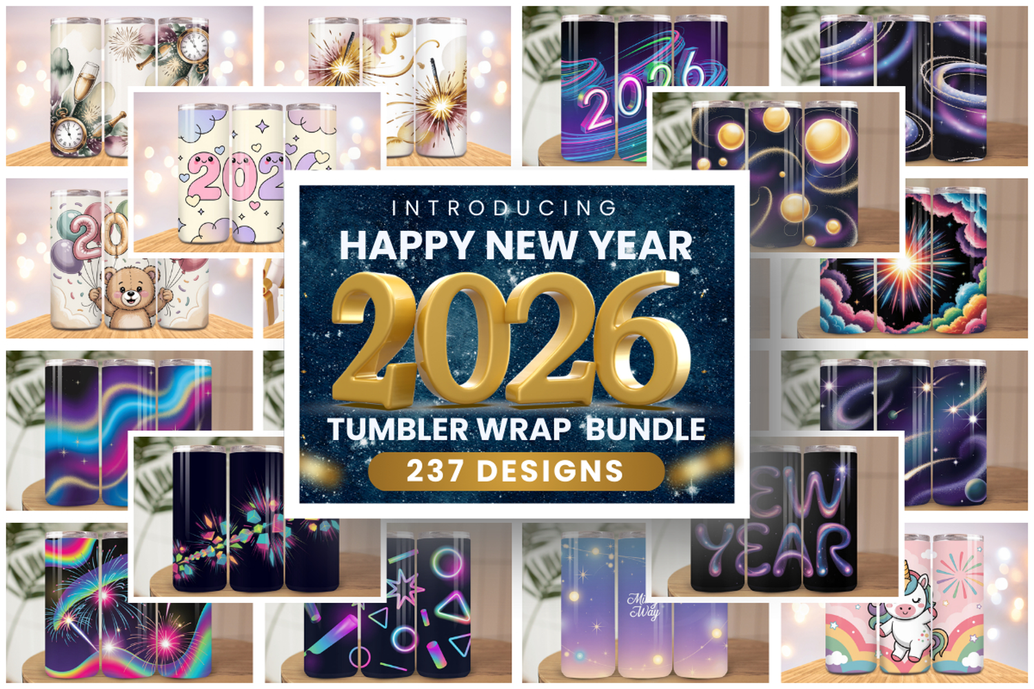 Festive Happy New Year's Eve Tumbler Wrap 2026 Sublimation Bundle: 20oz Skinny Sublimation Design Bundle