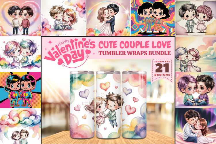 Valentine’s Day Cute Couple Love Tumbler Wrap PNG Big Bundle example image 1