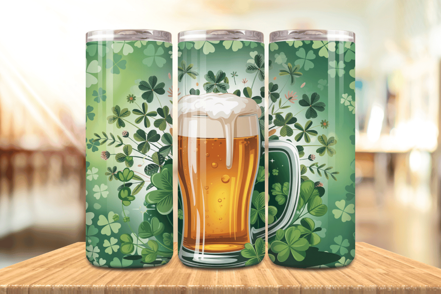 Irish Beer with Shamrocks Tumbler Wrap PNG Sublimation Desig