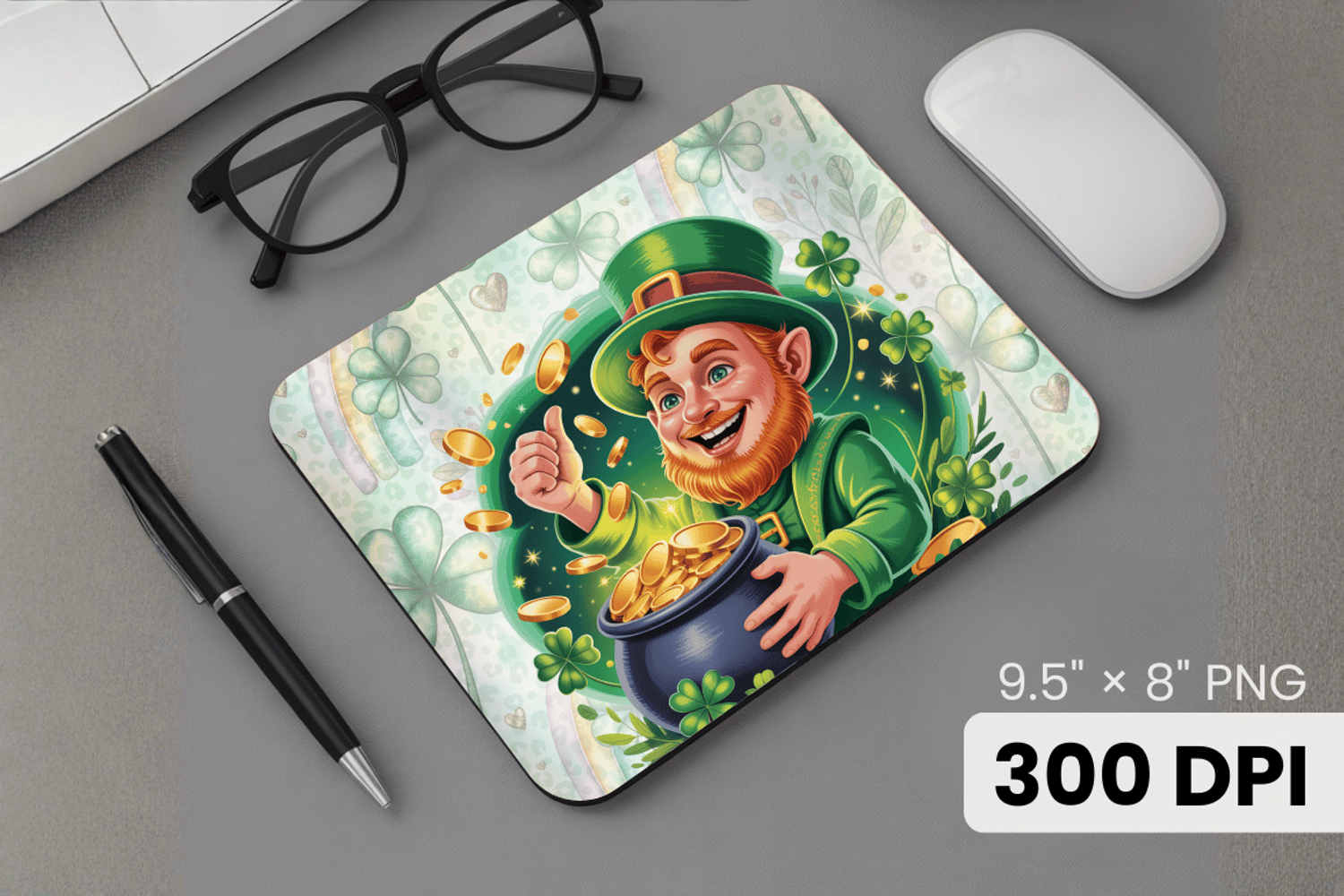 Similar Design Products to Smiling Leprechaun with Gold Pot Mouse Pad PNG Sublimation D
