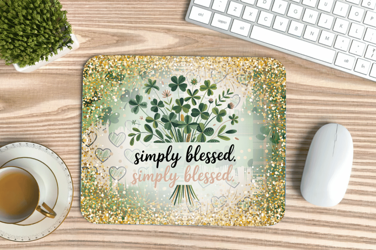 Simply Blessed Shamrock Floral Mouse Pad PNG Sublimation Des