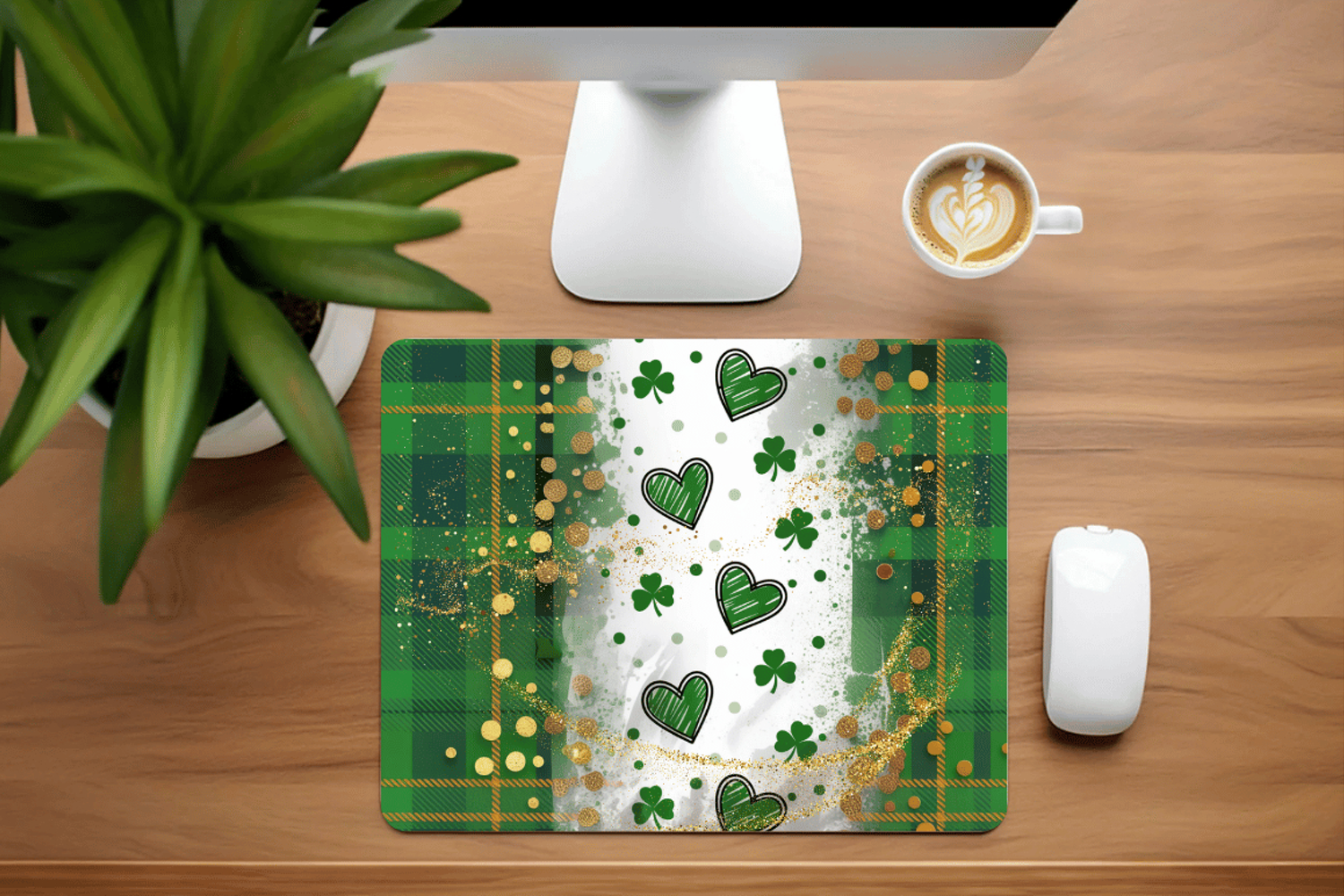 Similar Design Products to Green Plaid Shamrock Hearts Glitter Mouse Pad PNG Sublimatio