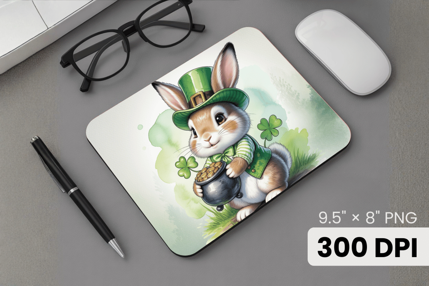 Cute Bunny Leprechaun Holding Pot of Gold Mouse Pad PNG Subl example image 1