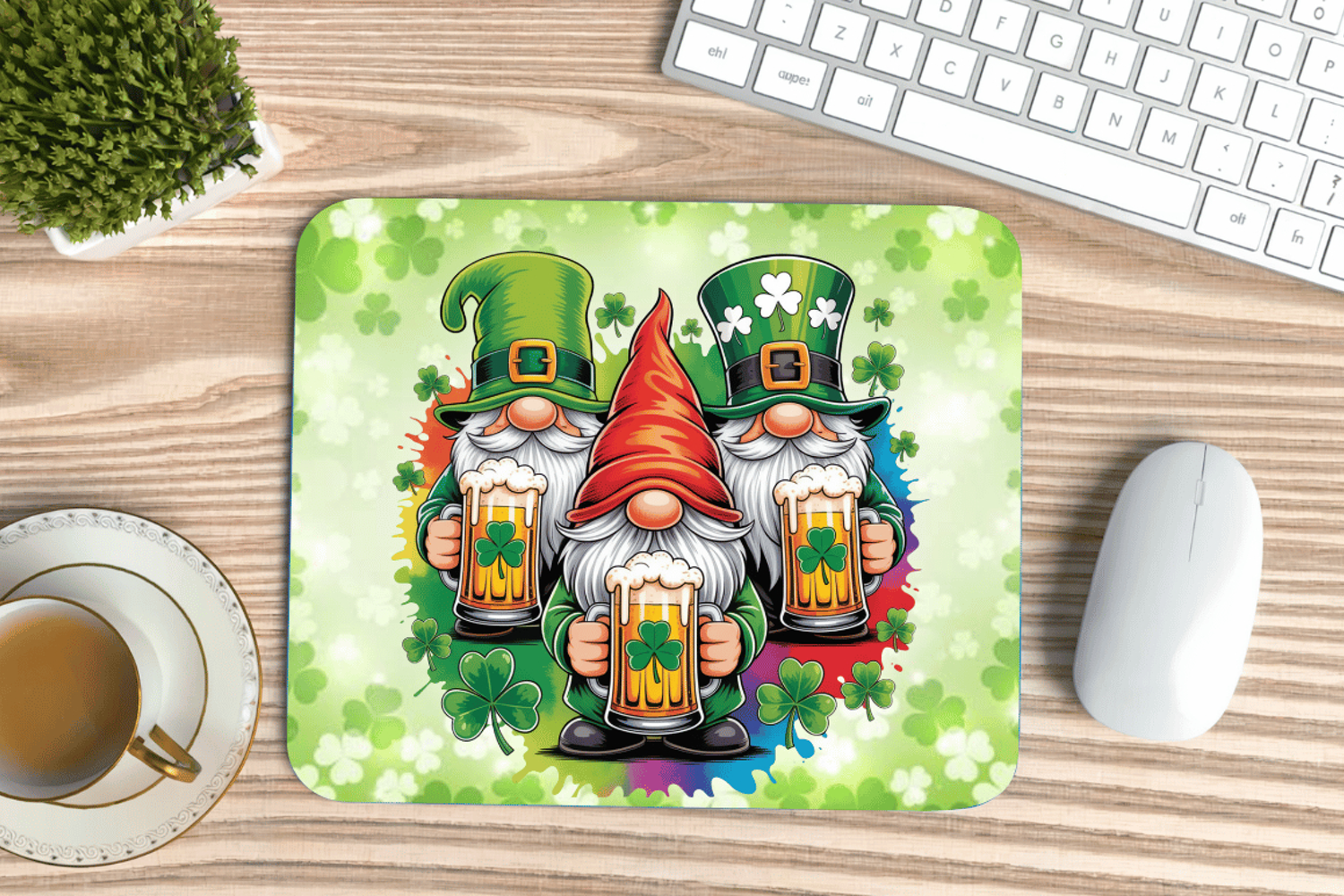 Funny Irish Gnomes with Beer Mouse Pad PNG Sublimation Desig