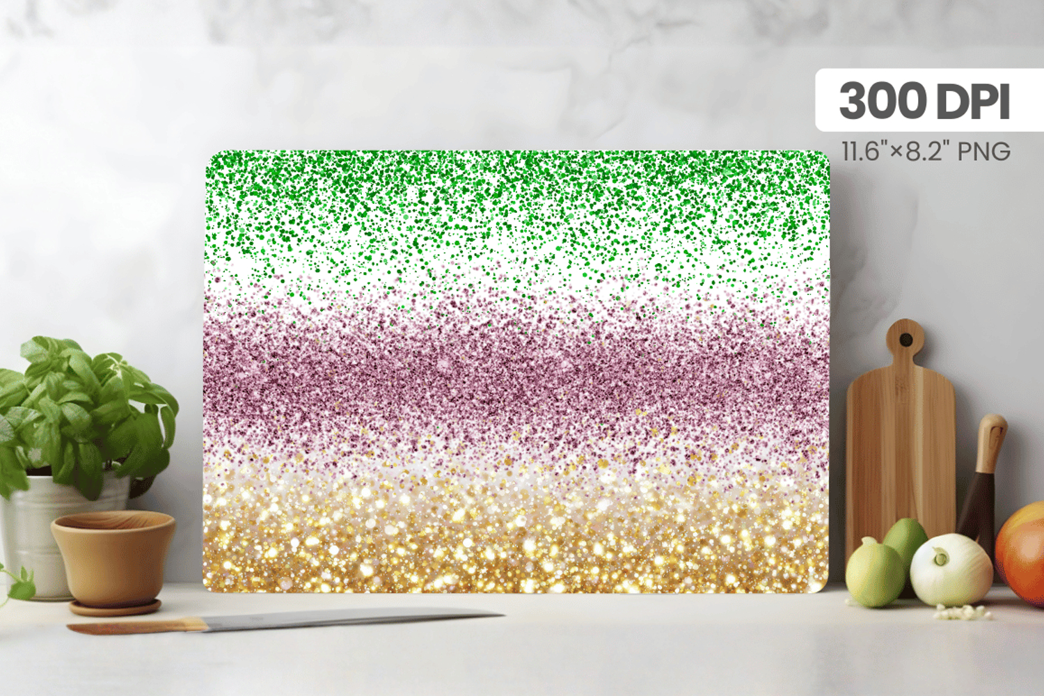 Green Gold and Pink Glitter Cutting Board PNG Sublimation De