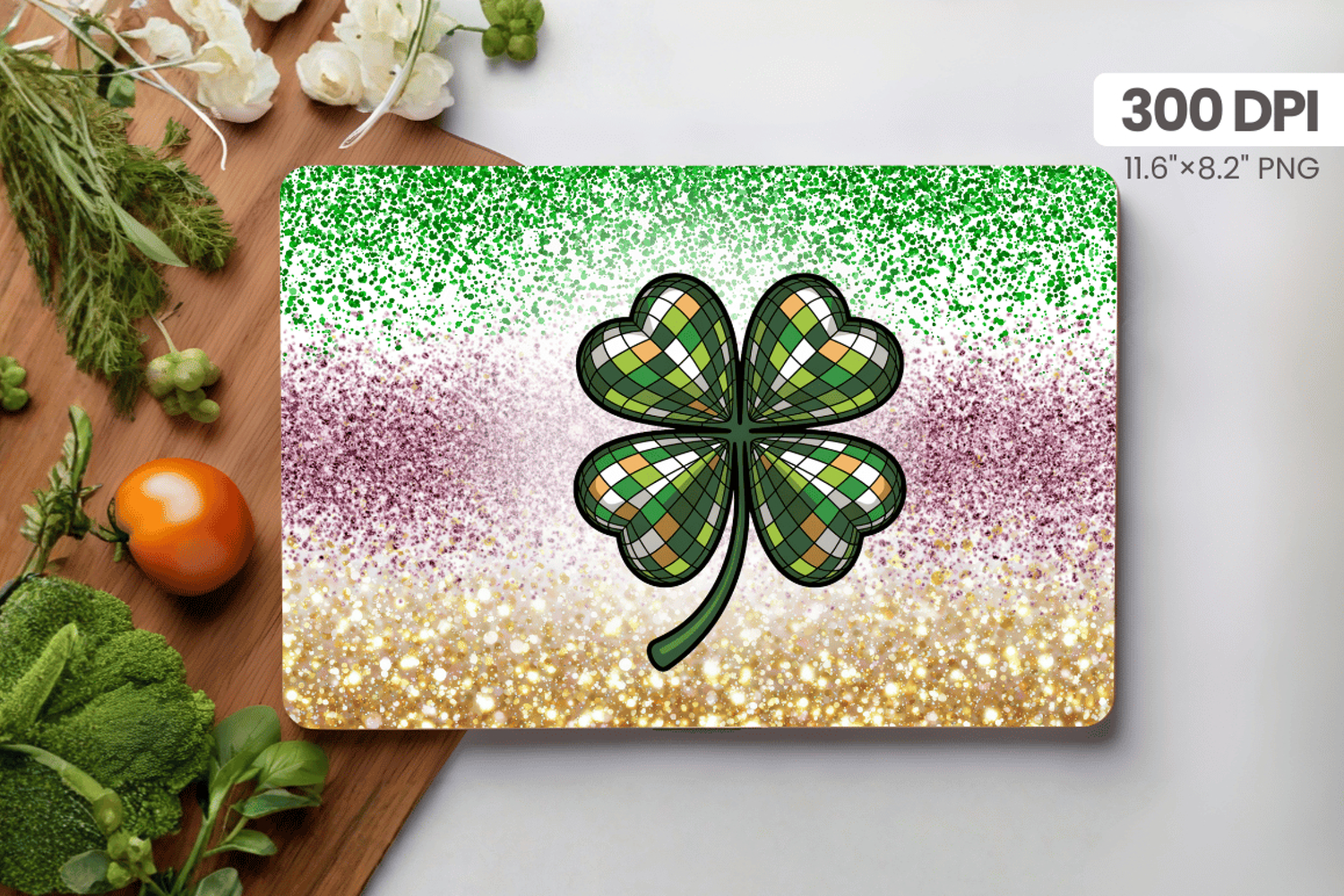 Glitter Four Leaf Clover Cutting Board PNG Sublimation Desig example image 1