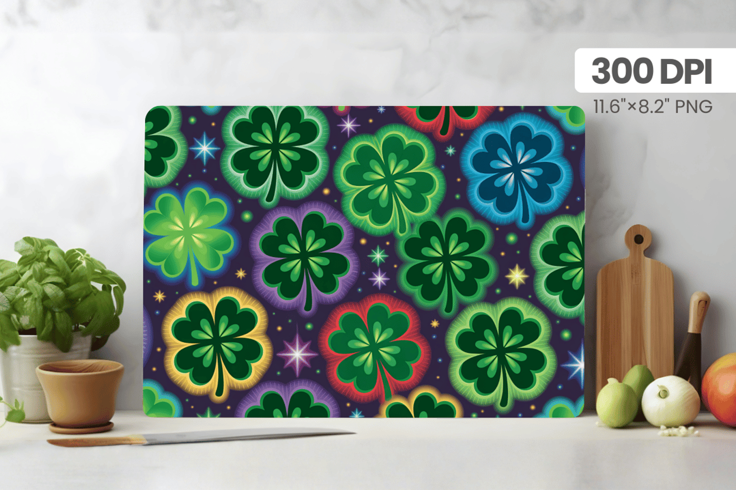 Colorful Shamrock Pattern Cutting Board PNG Sublimation Desi example image 1